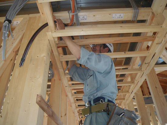 大工さんの進捗に合わせ内部の電気配線工事も進められております。