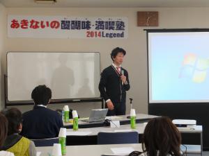 全国でも人気の講師、煖エ幸司氏をお呼びし、全6回の日程で開催する、経営革新塾。平成26年11月10日(月)は中山町での開催でした。成功事例を多く紹介しており、具体的な内容なので、すぐに実践できます。