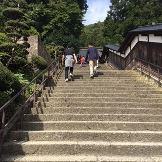 ●いつも、賑やかな次男。皆様には、大変お世話になっております。先日・・・心を清めるべく、秋晴れの日に、山寺への参拝をしました(笑)私は、山形に来てから一度も行ったことがなくて・・・。念願が叶いました(^^♪でも最初の階段に、下で待ってようか?と思いましたが、頑張って登ってみて良かったです。時には・・・ちゃんと落ち着いて、大事なことが考えられるように。次男のMも、軽々と登り切り、必死で何やらお願いしてましたね・・・(笑)ちなみに、上に見える赤い服は三男。なんと意外にも「もう疲れた〜?」と、一度も言わずに、ほとんど最高段まで、駆け足で登った三男の元気&若さには、びっくりしました!!少しツラそうな板長。そりゃそうだよね・・・40代後半ですから(-_-;)でも一番ダメだったのは、私。汗かいたのも、私。苦しかったのも、私。でも、全然痩せませんでした!なんでやねん!!(;´Д`)そして一番、自分を清めたのもたぶん、私。・・・反省してます。