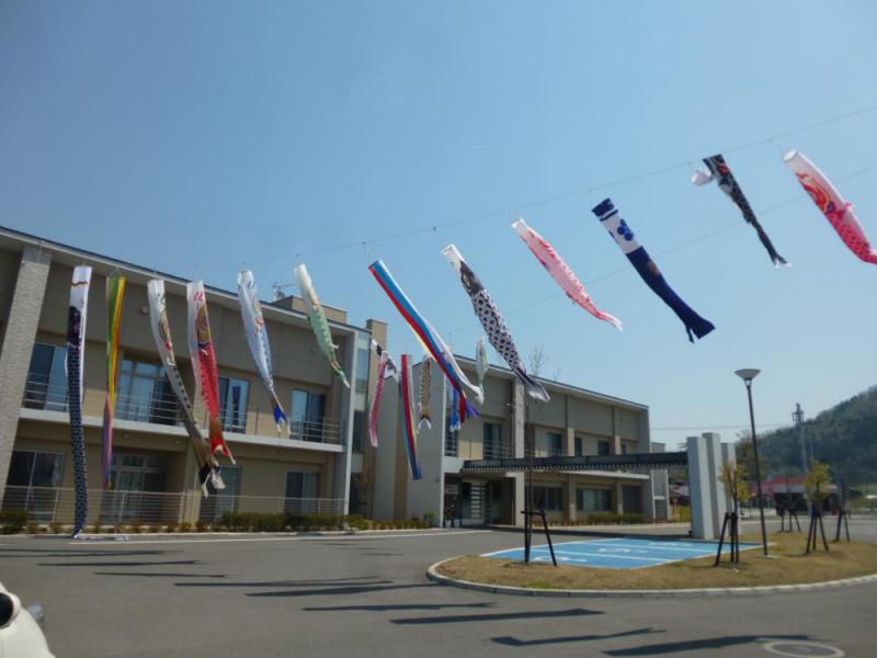 初夏を迎え、様々な花が咲き誇り散歩に心地よい季節となりましたね。さて、5月といえば端午の節句です。和合荘では、昨年に引き続き玄関前の大空に、こいのぼりを泳がせました。しかも、昨年より数が多い14匹!(プラス吹流し4本)2列に並んだ鯉のぼりが、晴れた日に空を泳ぐ様はなかなか壮観です。5月20日頃まで飾る予定としていますので、お気軽にお越しくださいませ。また、和合荘周辺のリンゴの花が満開を迎え、入居者の方々の目を楽しませております。近くで見ると、薄っすらとピンクに色づくリンゴの花も一見の価値ありですよ!