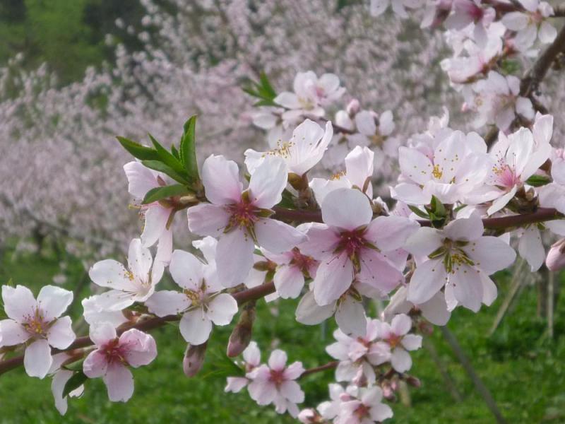 急に暖かくなりあっという間に花が咲きました。畑一面ピンクに染まっています。