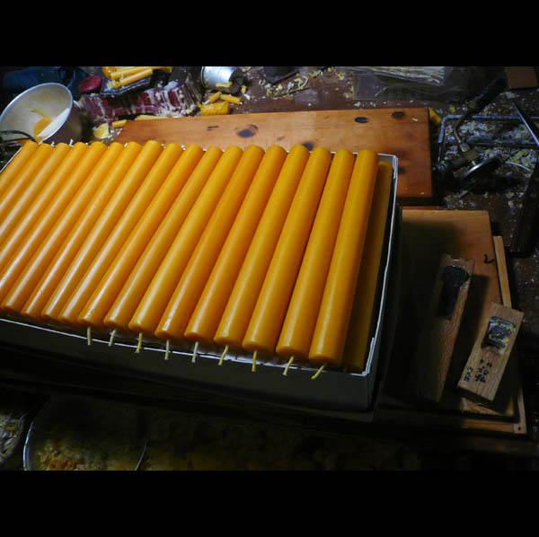 黄色い蜜ろうは、なかなか神仏用に使っていただけなかったのですが「優しい炎がいい」と、少しずつ全国のお寺や大きな仏教宗派で定期的に注文をいただけるようになりました。富樫さんには心から感謝しております。現在は、冷蔵庫を購入して冷やして一年中作れるようになりました。