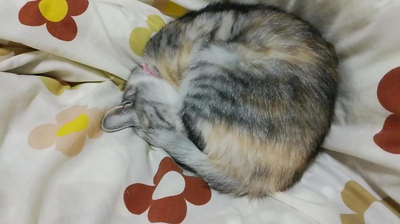 暑くて伸びーっと寝ていたにこちゃんが、アンモニャイト寝をするようになり、秋の訪れを感じています。