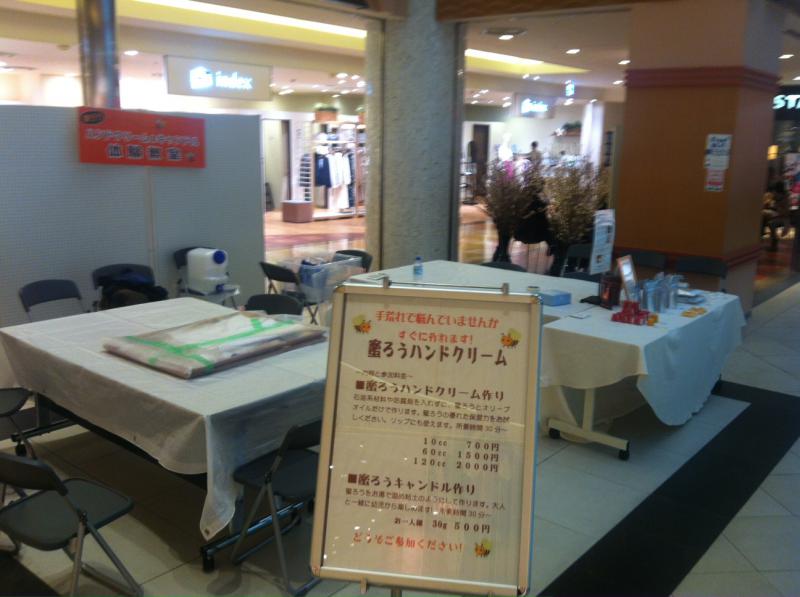 「エスパルで蜜蝋ハンドクリーム作り!」おかげさまで二日間賑やかに開くことができました。山形駅ビルのおしゃれな場所なのに、皆さんのおかげで、ほっとする場所になってました。写真はまったく撮れずかたづけの1枚。ご参加・宣伝ご協力ありがとうございました。来年も参ります^^