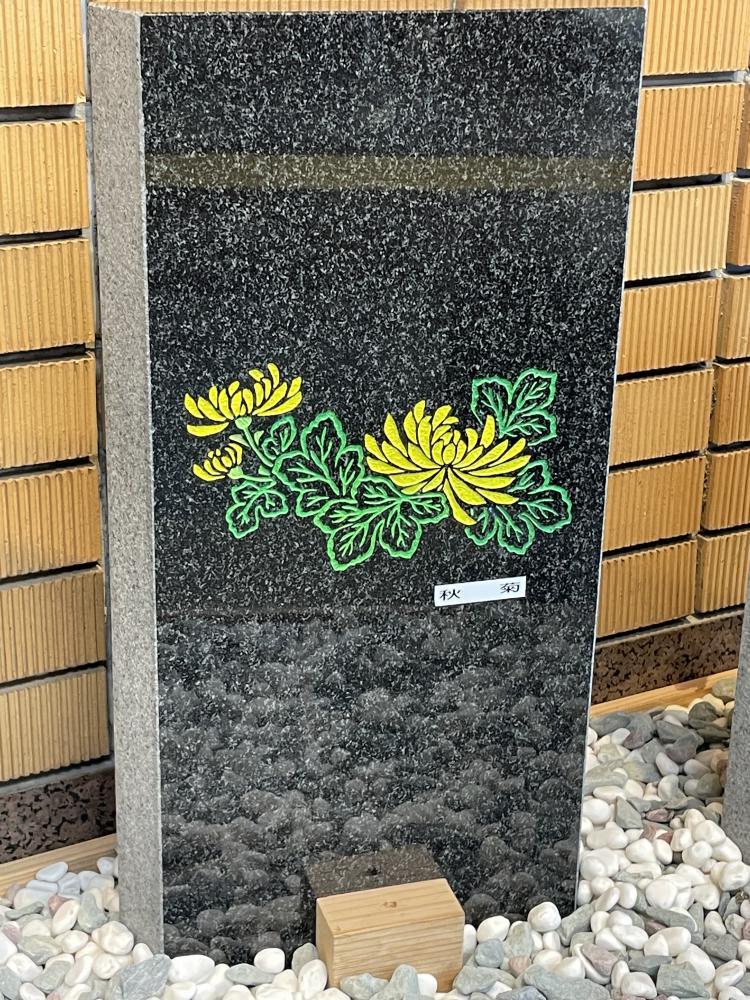 本日、石の浄朝(有)親子三人展の7日目を御覧になっていただいた皆様、まことにありがとうございます!村山総合支庁に親子三人展として展示させていただくのも、あと1日半ほどになりました。引き続きにはなりますが9日の午後より親子三人展の作品撤収後に、墓地景観創造研究会による展示の準備になります。詳しくは後日お知らせいたします。『やすらぎ石室』〜四季の花園〜秋のとき 菊
