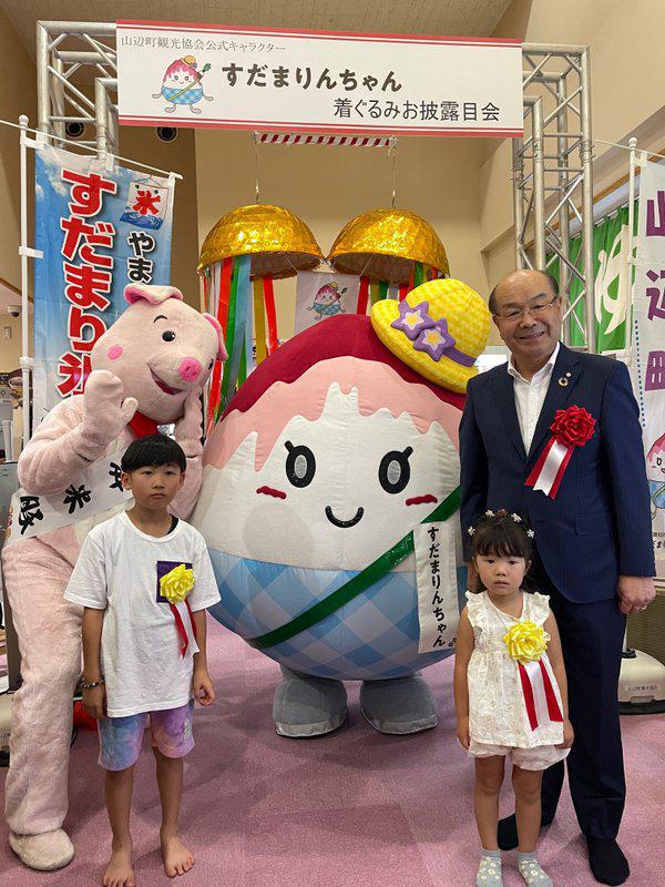 「すだまりんちゃん」着ぐるみお披露目会を開催しました!くす玉割りや誕生ケーキで誕生のお祝いをしました。たくさんの方々に祝っていただき、ありがとうまりん!!