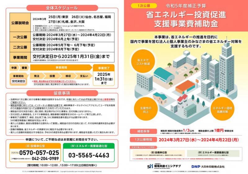 さまざまな業種で横断的に使われる汎用的な15設備の更新に対応する補助金です。詳しくは、省エネルギー投資促進支援事業費補助金HP(https://syouenehojyokin.sii.or.jp/34business/)をご覧ください。