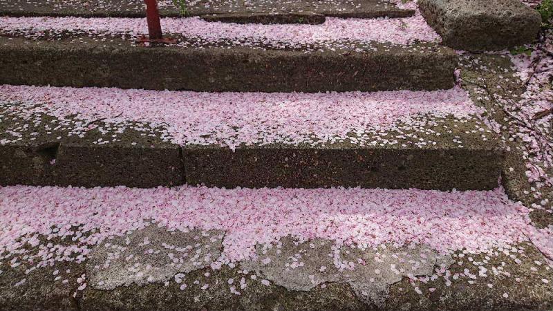 ●雪のように積もった桜の花びら すっかり桜の季節が過ぎ去ってしまいました 近所にある地域の神社の桜もすっかり散り神社に登る石段には雪のように花びらが積もっていました まだ北では桜の開花を伝えていますがいよいよ本悪的な花々の開花の季節がやってきます