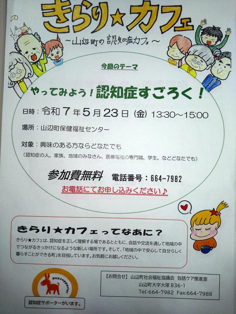 認知症の方、介護や認知症に関心のある方ならどなたでも参加でき、みんなが気軽に立ち寄れる「つながり」と「きっかけ」ができる新しい場所です。・日時/令和7年5月23日(金)午後1時30分〜3時00分・内容/「やってみよう!認知症すごろく!」・場所/山辺町保健福祉センター・対象者/関心のある方ならどなたでも・参加費/無料【事前に申し込みが必要です】申込問合せ 山辺町社会福祉協議会 電話(664)7982