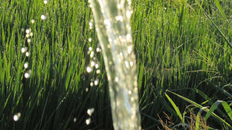 ●今から20年近く前のことです「じゃ じゃ じゃ じゃ」と話もできない1歳の孫が流れ落ちる水を見て声を発しました そんな風景が今も続いており今にも穂がでるような緑色の田んぼが広がっています 水不足のニュースが流れていますが周りの田んぼはその心配もなく順調に成長しています 間もなく穂が出る季節です 豊作を願うのみです