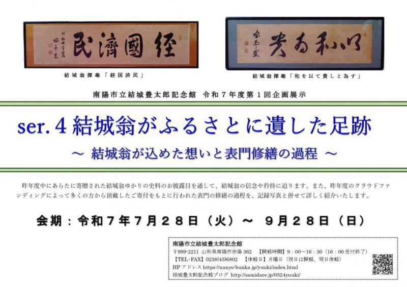 ●令和7年度第1回企画展「ser.4 結城翁がふるさとに遺した足跡〜結城翁が込めた想いと表門修繕の過程〜