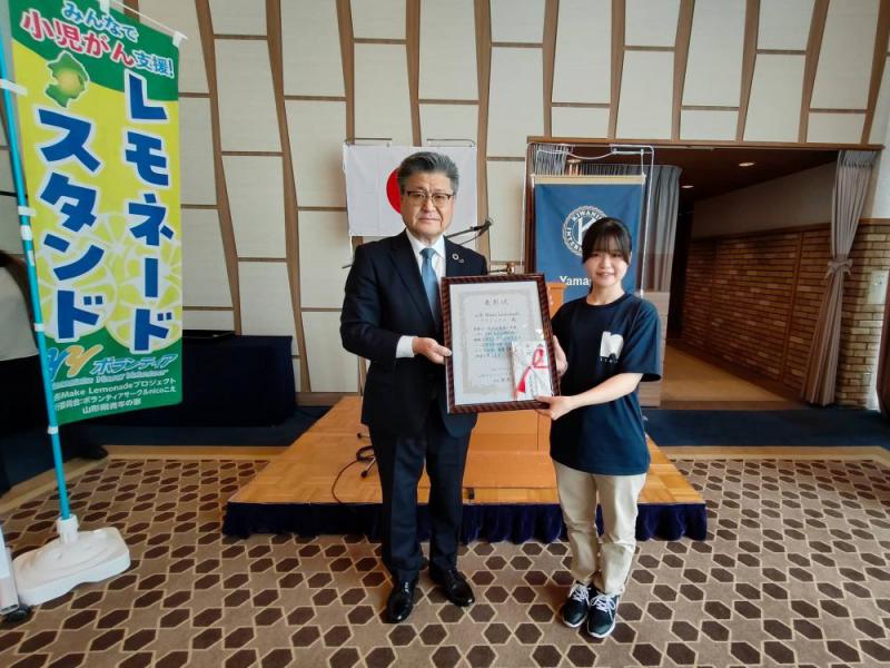 YYボランティアサークルの一つである小児がん支援NPO団体『山形 Make Lemonade プロジェクト実行委員会(以下 YMLP実行委員会)』は、令和7年8月21日(木)に山形キワニスクラブ様より「社会公益賞」を受賞しました。これに伴い贈呈式が執り行われました。 山形キワニスクラブは、社会奉仕団体国際キワニスの県内組織で、地域における子ども支援や社会奉仕活動に取り組んでいます。今回の社会公益賞は、子どもたちのために地域で活動する団体や個人に贈られるもので、YMLP実行委員会のこれまでの活動が評価されました。YMLP実行委員会の取り組みやプロジェクトの詳細は、以下のページをご覧ください↓http://seinen.jp/log/?l=534802 受賞に際し、ご支援・ご協力くださった皆さまに心より感謝申し上げます。今後も小児がん患者とそのご家族、医療従事者をはじめとする関係者の支援に尽力してまいります。