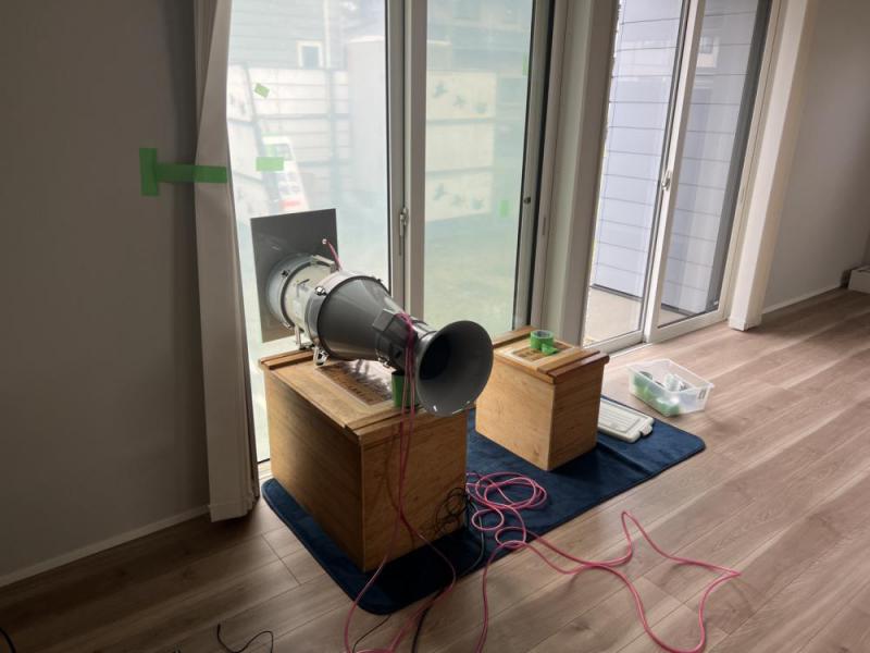 みなさんこんにちは先日、完成気密検査を行いました無事弊社の規定以上の数値がでて安心です断熱性能がよく夏は涼しく、冬は暖かいよいいえになりました