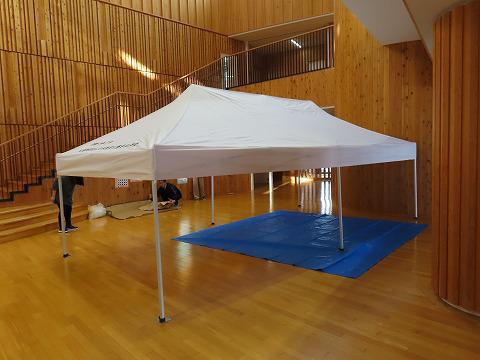 倍率が高く、なかなか当たらない校名付きテントに応募したら・・・なんと当選しました。教頭先生の引きの強さです。購入すれば十万円以上もするでしょうか。ホールで開いてみました。次年度から外で活躍する予定です。今年の漢字を書いていた学級がありました。「楽」楽しく学校に来られてよかったです!ステキだったのでパチリ。