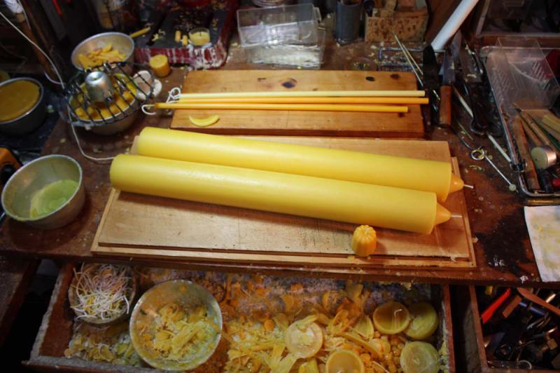 「教会の燭台にあったキャンドルを作って欲しい」とオーダーが入り製作いたしました。こんな大きなキャンドルを作ったのは初めてです。カヌレSサイズがとても小さく見えます。おかげさまで、いろいろ勉強になりました。