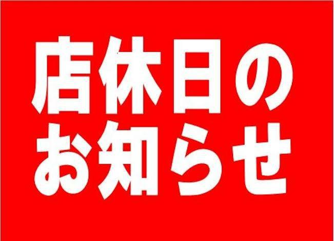 12月は毎週火曜日の他に18日(水)休業致します17日(火)営業します営業します27日から1月6日まで昼の部休業いたします上記以外にも諸事情により昼の部休業する時有りますので電話確認の上のご来店をお奨めします 働き方改革や、高齢に成ったことも有り毎週火曜日の他に不定休で2日ほどお休みを頂きます 御了承ください※当面の間、夜部の営業時間は午後9時で終了とさせて頂きます