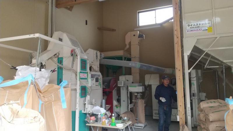 乾燥させた米を玄米にする作業をやっています。